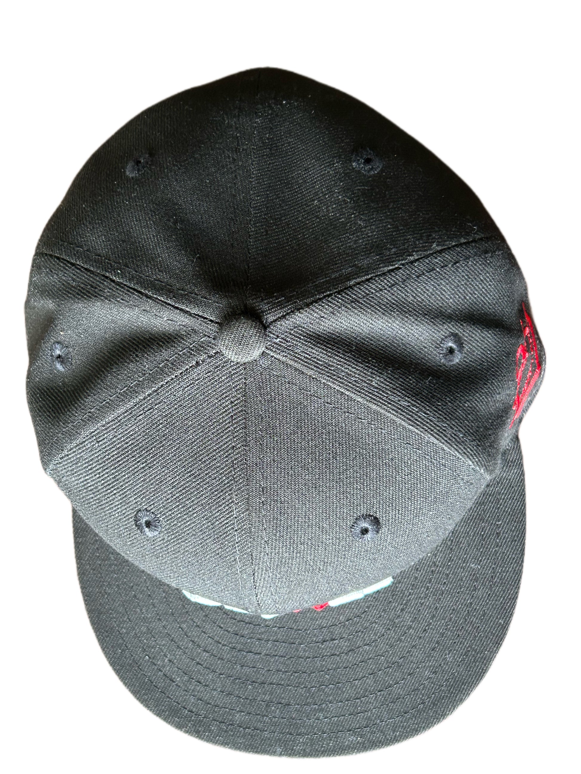 Black and white snapback hat with red pulse